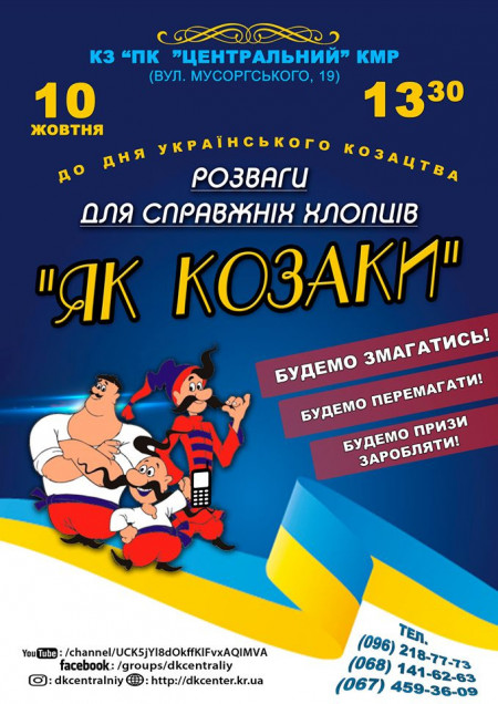10 жовтня, до Дня українського козацтва, у Кривому Розі відбудеться змагально-розважальній захід для справжніх хлопців "Як козаки".