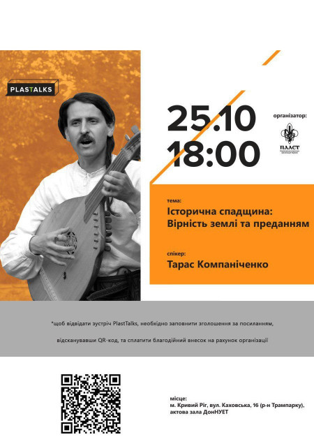 Кривий Ріг, зустрічай, PlasTalks! Це формат відкритих зустрічей з відомими пластунами, який організується за сприяння Національної скаутської організації України "Пласт".