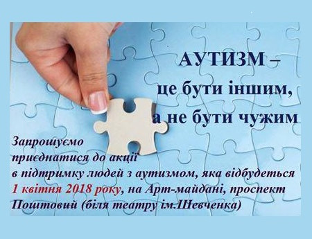 Громадська організація «Асоціація допомоги людям з розладами спектру аутизму – КР» запрошує мешканців і гостей нашого міста на інформаційно-благодійний захід, який відбудеться 1 квітня на Арт-майдані. В цей день Арт-майдан перетвориться на яскраве та казкове місце, де ніхто не залишиться без уваги. |