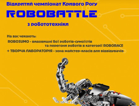 24 березня відбудеться Відкритий чемпіонат Кривого Рогу з робототехніки — RoboBattleГостей та учасників чемпіонату чекають видовищні бої роботів у 2 категоріях: